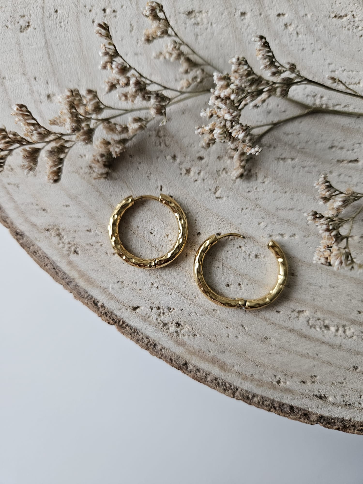 Gold hammered hoop earrings